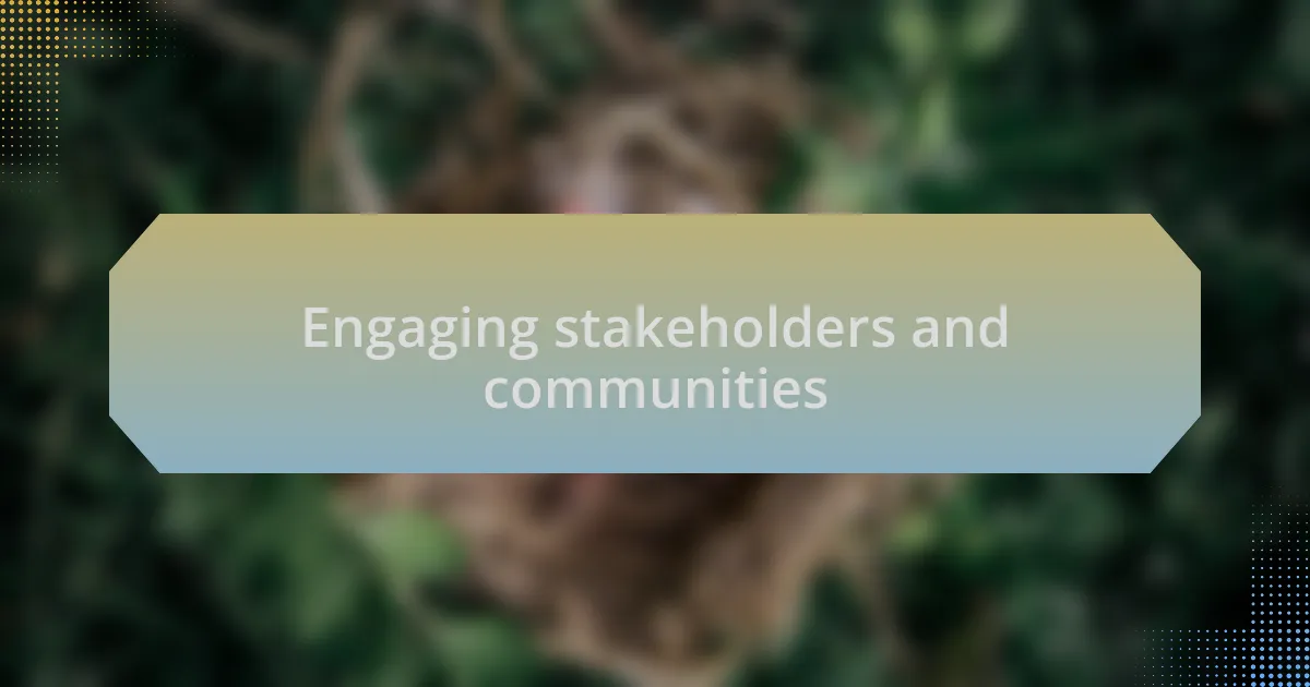 Engaging stakeholders and communities is at the heart of a successful campaign. In one of my projects, I organized a community event that drew together local farmers, conservationists, and school children. Watching them discuss the importance of preserving habitats while sharing their own experiences made me realize how essential it is to foster these connections. When people feel personally invested, they’re more likely to contribute their time and resources.